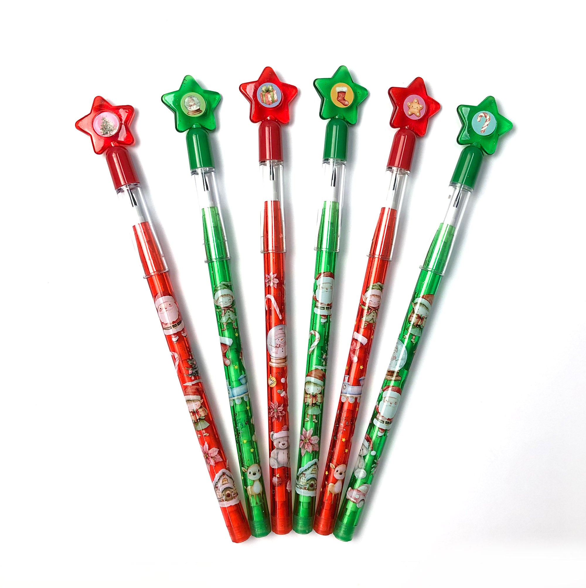 - 6 vintage rustic Christmas stacking pencils with non-sharpening leads