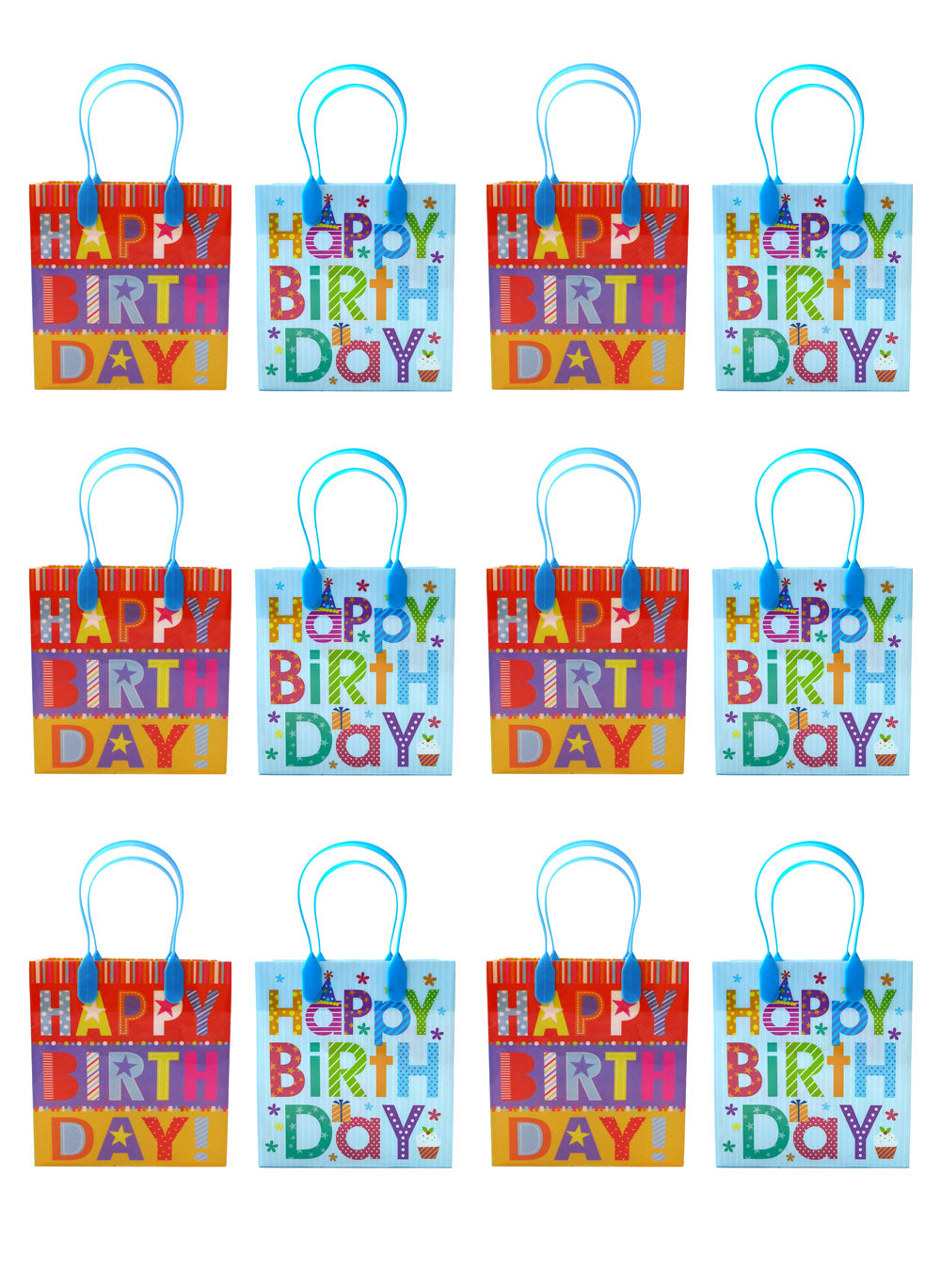 Choose from a set of 6 or 12 Happy Birthday Party Favor Treat Bags to make your celebration unforgettable. These high-quality bags with durable handles are perfect for filling with treats, toys, and goodies. Designed for reuse, they offer lasting value and convenience for multiple parties. Pair them with our exclusive party favors and stationery to create the ultimate birthday party bundle that your guests will love. Each bag measures appx 7 inches tall, 6.25 inches wide, 3 inches deep