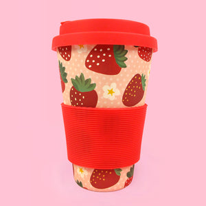 Eco-Friendly Reusable Plant Fiber Travel Mug with Strawberry Design