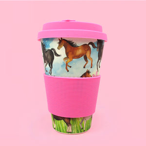 Eco-Friendly Reusable Plant Fiber 14 oz Travel Mug with Horse and Pony Design