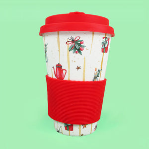 Eco-Friendly Reusable Plant Fiber Holiday Travel Mug with Christmas Coffee Design