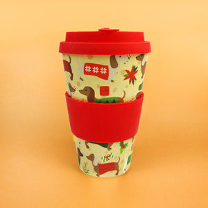 Eco-Friendly Reusable Plant Fiber Holiday Travel Mug with Christmas Wiener Dog Design