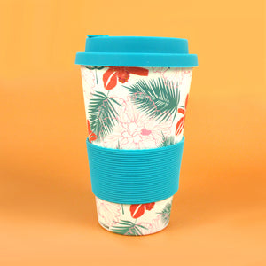 Eco-Friendly Reusable Plant Fiber Travel Mug with Tropical Paradise Design
