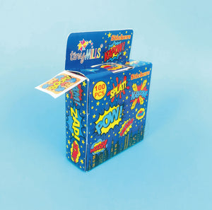 Superhero Stickers 100 Stickers/Dispenser, Pack of 1, 6 or 12 Dispensers