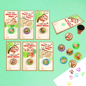 Sloth Valentine's Day Cards with Stampers for Classroom Exchange