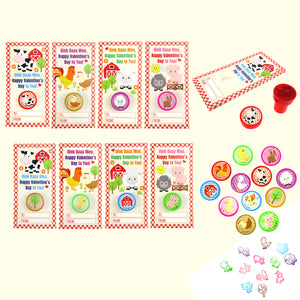 Barnyard Farm Animal Valentine's Day Cards with Stampers for Classroom Exchange